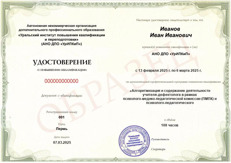 • Повышали квалификацию в АНО ДПО «УрИПКиП» – вам будет выдано удостоверение.
