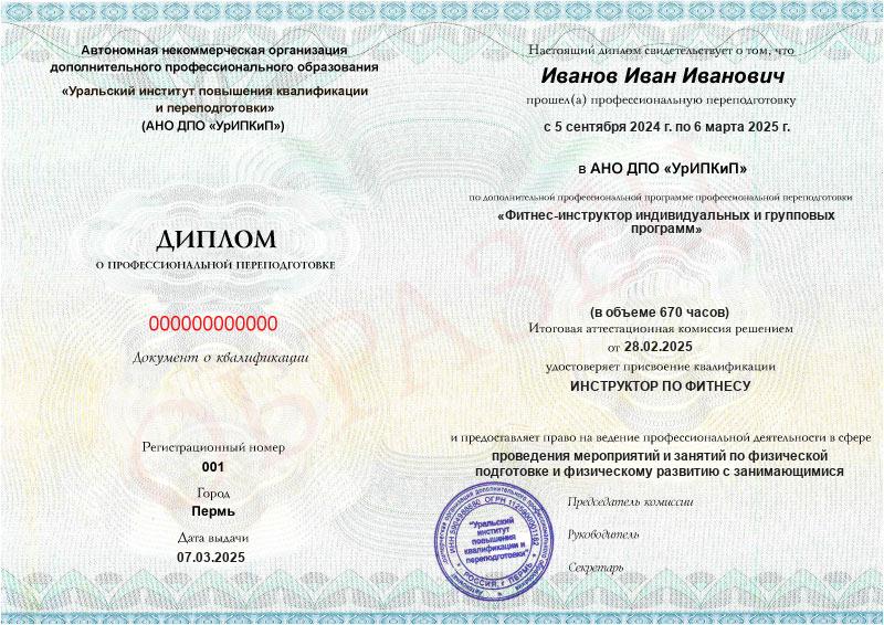 Чтобы получить профильное образование, можно пройти курс профессиональной переподготовки. Он проводится в дистанционном формате и позволяет освоить профессию за 6,5 месяцев. Уже через полгода вы получите теоретическую и практическую базу, а также диплом о профессиональной переподготовке с правом работать инструктором.