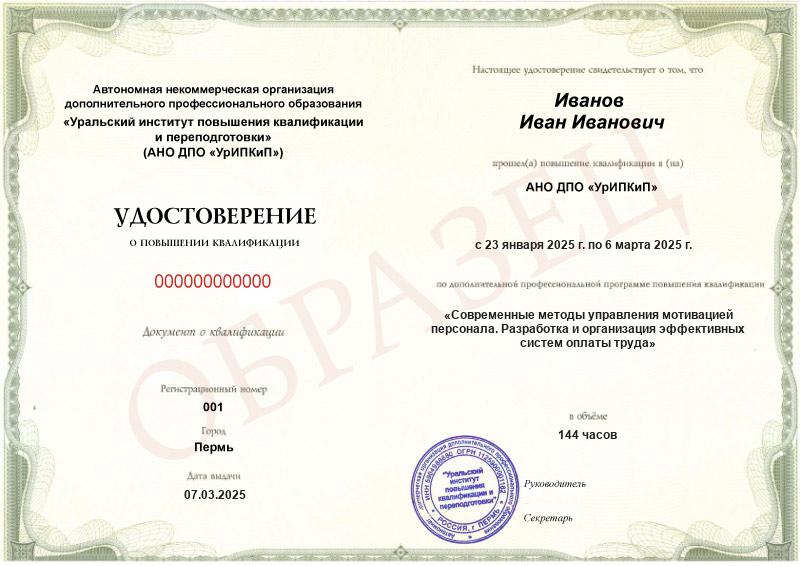 Курс обучения Современные методы управления мотивацией персонала. Разработка и организация эффективных систем оплаты труда (144ч)
