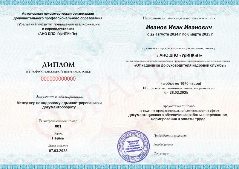 • 2 квалификации: Менеджер по кадровому администрированию и документообороту + Специалист по нормированию труда