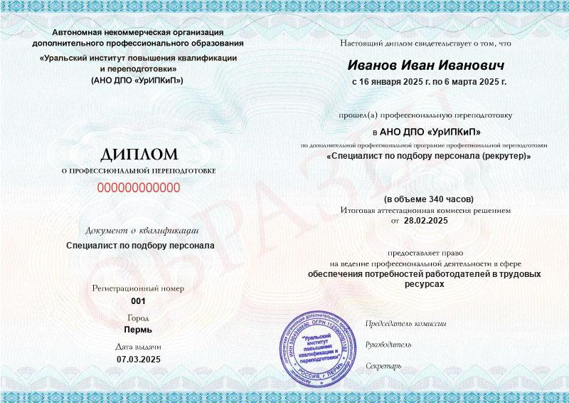 Курс обучения Специалист по подбору персонала (рекрутер) (340ч)